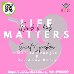 Guest speakers are Marise Frangie and Dr. Anne Borik and they will be discussing topics related to Life and Church teaching, with the hope of understanding this valuable gift our Lord has bestowed upon us, life.